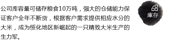 鐵等礦物質,無污染的環(huán)境,豐產(chǎn)的水稻資源,使鑫土地米業(yè)不斷發(fā)展壯大,成為綏化地區(qū)新崛起的一支精制大米生產(chǎn)的生力軍。